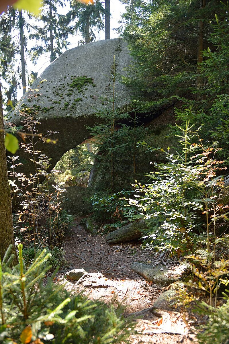 Eingebettet zwischen Fichtelgebirge und Oberpfälzer Wald wölbt sich der über 900 Meter hohe Granitrücken des Steinwaldes zu einem markanten Landschaftsbild der nördlichen Oberpfalz auf. Die geschlossene Waldlandschaft wird von Nadelbäumen, immer wieder mit schönem Mischbestand durchsetzt, geprägt. Aus dem harten Urgestein haben Wind und Wetter steil aufragende, bizarr geformte Felsengruppen genagt: Räuberfelsen, Vogelfelsen, Saubadfelsen und viele andere mehr. Auf der Platte, dem 946 Meter hohen Hauptgipfel des Steinwaldes, wurde der Oberpfalzturm erbaut, der einen weiten Rundblick gewährt. Der Naturpark „Steinwald“ ist der zweitkleinste der 19 Naturparke in Bayern.