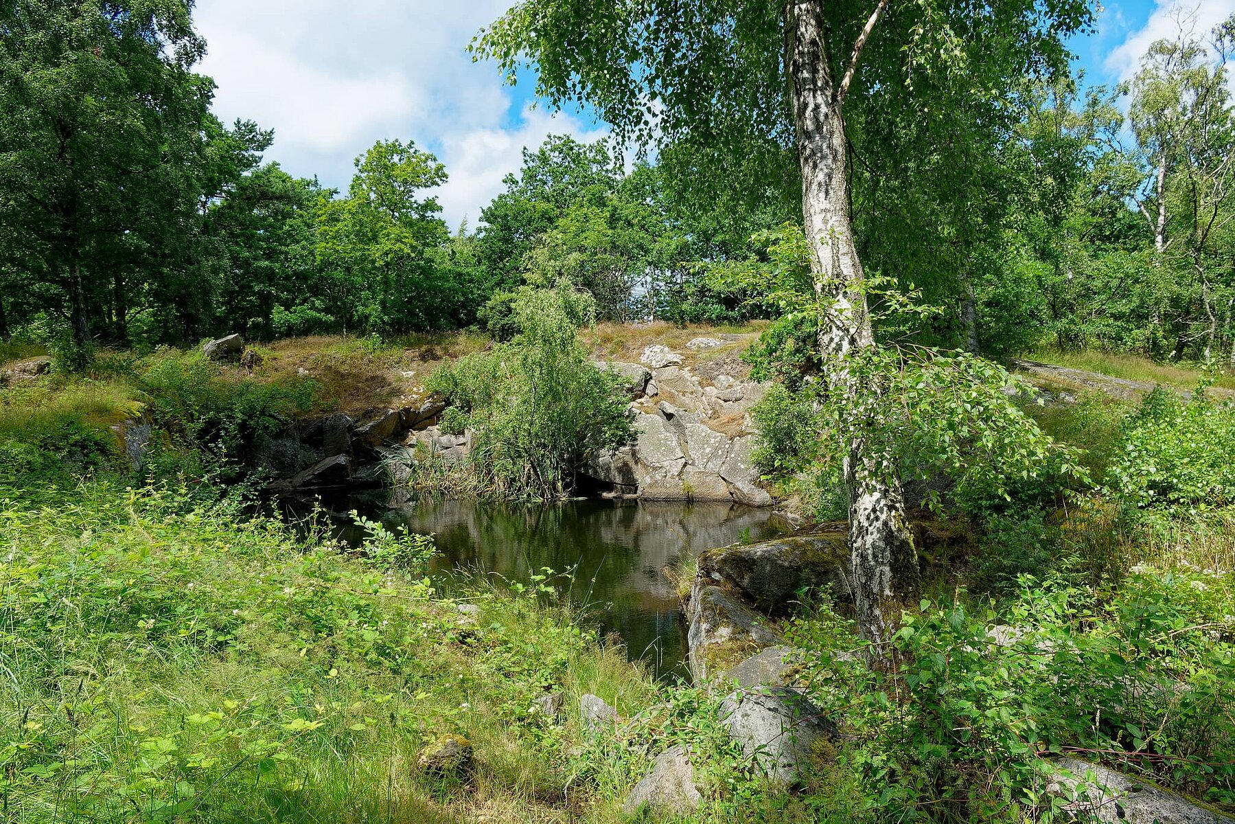 Spuren der Eiszeit: Einzelne Blöcke, die der Gletscher nach dem Abschmelzen hinterließ, sogenannte Findlinge sind an vielen Stellen der Insel zu finden. Manche wackeln auf ihrer Unterlage und werden daher Rokkesten (deutsch: „Wackelstein“) genannt.