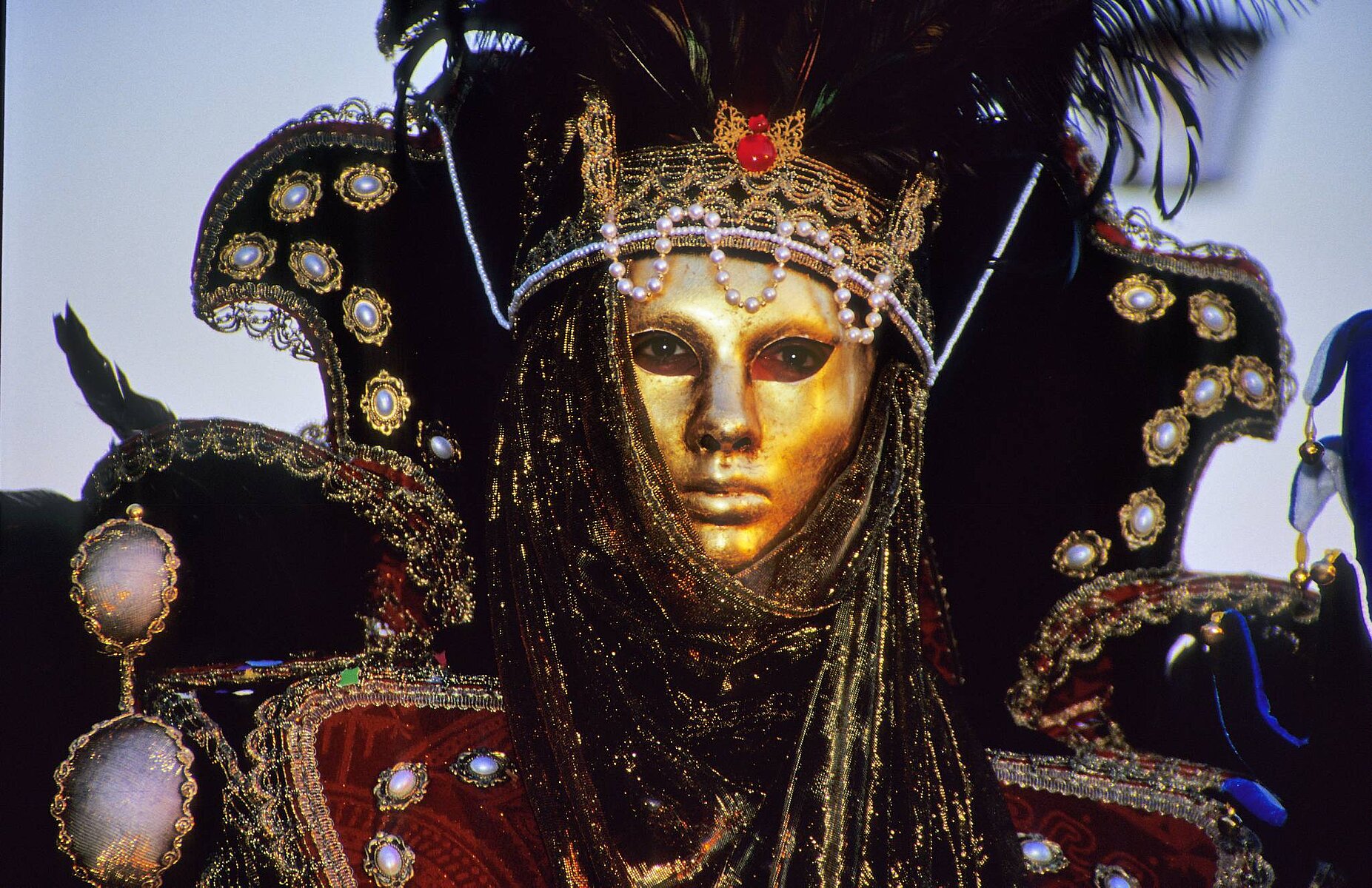 Goldmaske mit Blauen Fächern nah