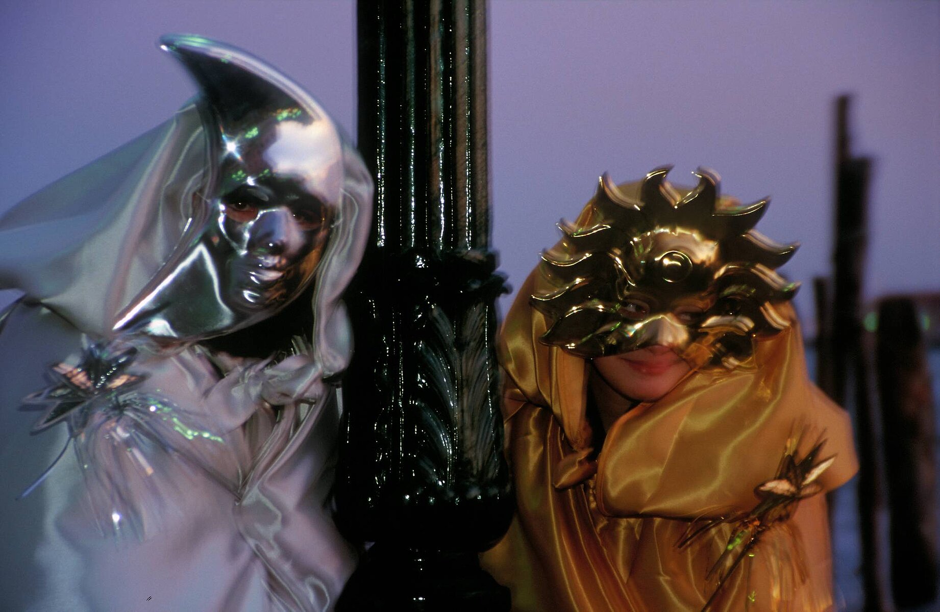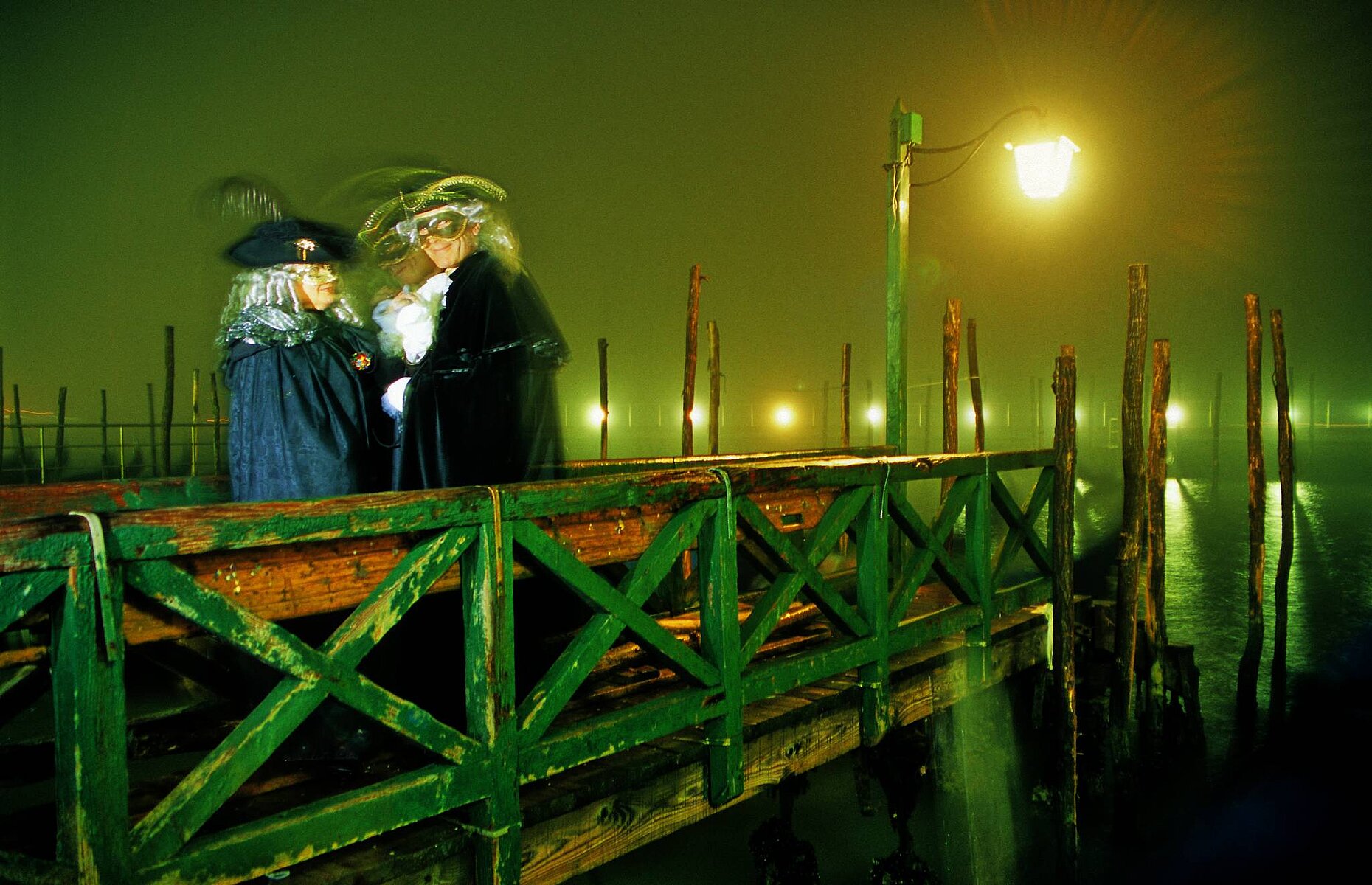 Zwei Masken am Steg