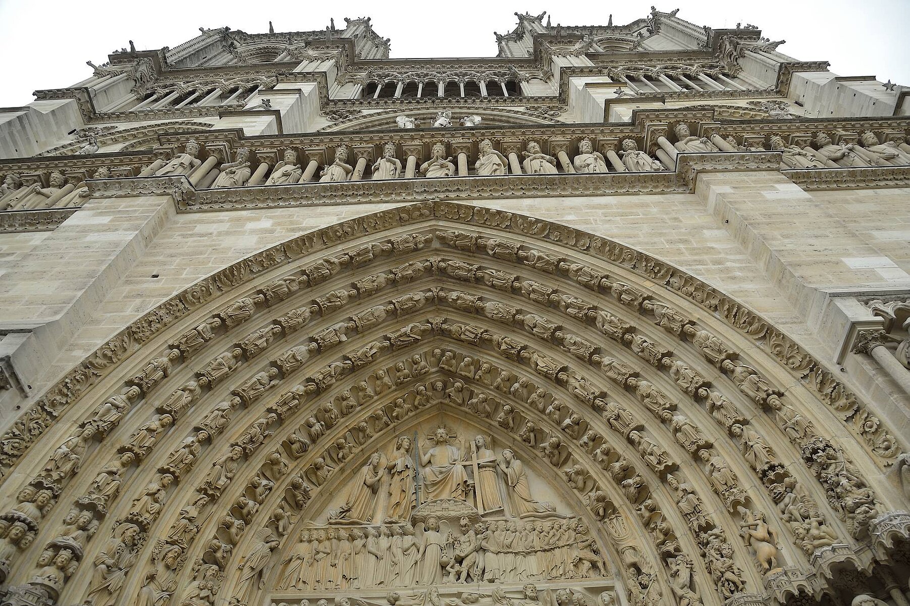 Am Abend des 15. April 2019 kam es in der Kathedrale zu einem Großbrand, der am frühen Morgen des Folgetags unter Kontrolle gebracht werden konnte. Weite Teile des Dachstuhls aus Eichenholz verbrannten, der hölzerne Vierungsturm stürzte ein und das Gewölbe der Hauptschiffe wurde an mindestens zwei Stellen durchbrochen. Zahlreiche Kunstschätze und Reliquien konnten dagegen gerettet werden.